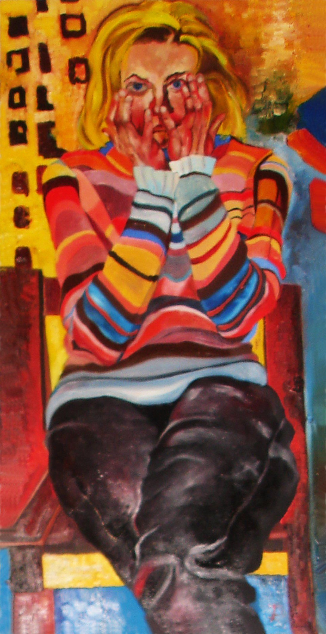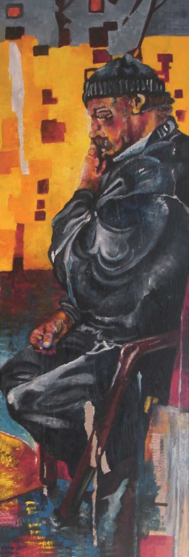 La série La partie d'échecs est composée de sept huiles sur toile (soit un tableau de cm 15Ox15O, deux tableaux de cm 15Ox5O cm, deux tableaux de cm 100x5O et deux tableaux de cm SOxSO), l'ensemble formant une figure géométrique rectangulaire.